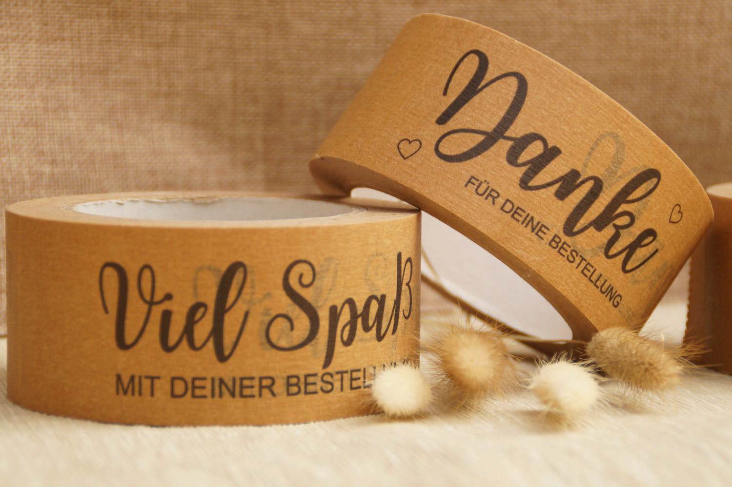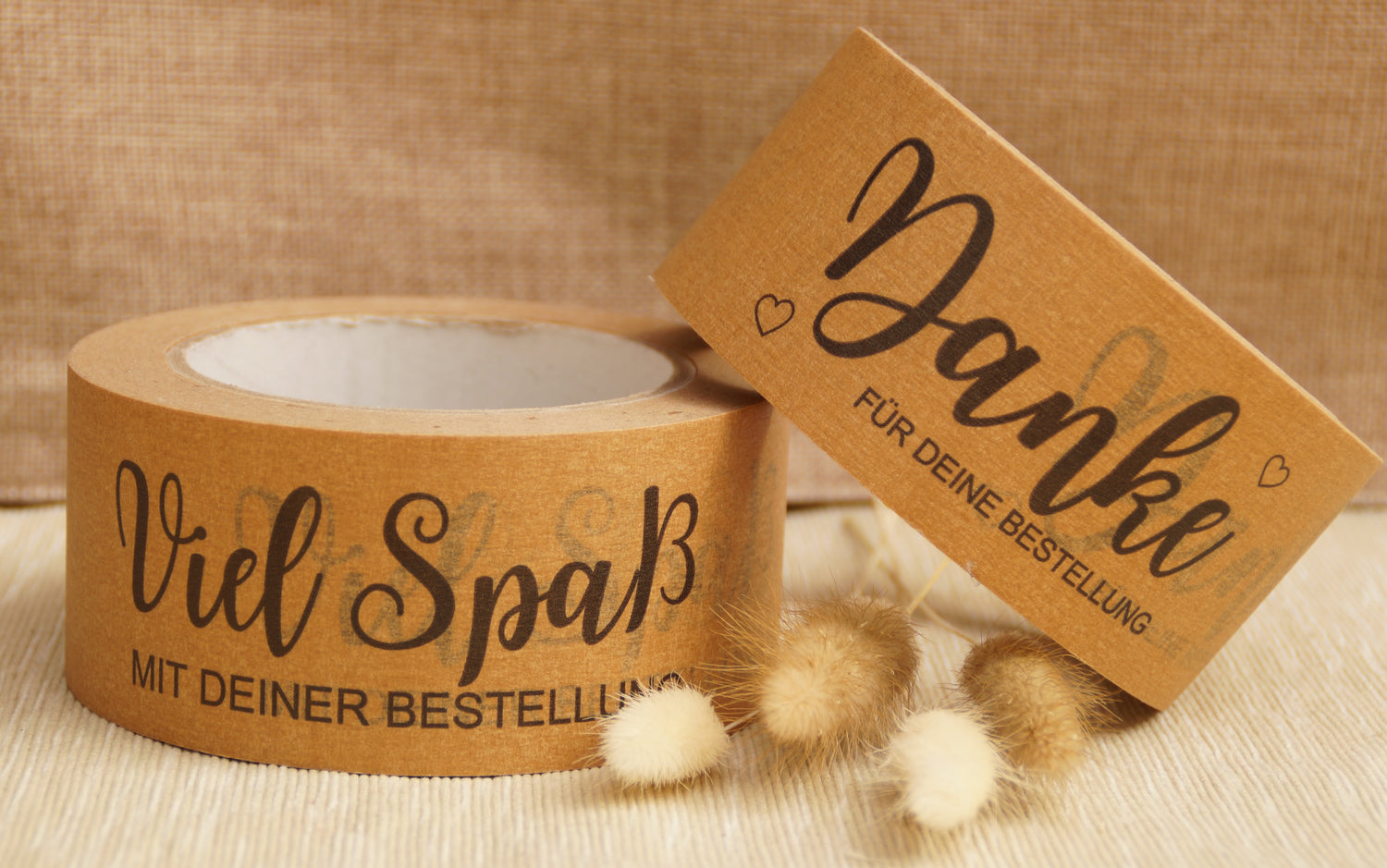 Unser Paketband bietet nicht nur eine zuverlässige Versiegelung, sondern vermittelt auch eine persönliche Botschaft. Es zeigt deinen Kunden, dass du ihre Bestellungen wertschätzt, was zu einer höheren Wiederbestellungsrate und positiven Bewertungen führen kann. Zudem ist unser Paketband plastikfrei und recycelbar, was deinem Unternehmen hilft, umweltfreundlich zu bleiben.